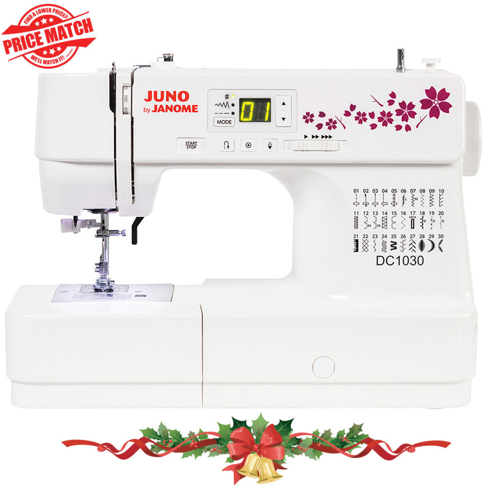 The Janome DC1030 Sewing Machine is a computerised sewing machine. It features 30 built-in stitches with memory buttonhole, a sewing speed of 820 spm, and 5mm stitch width.