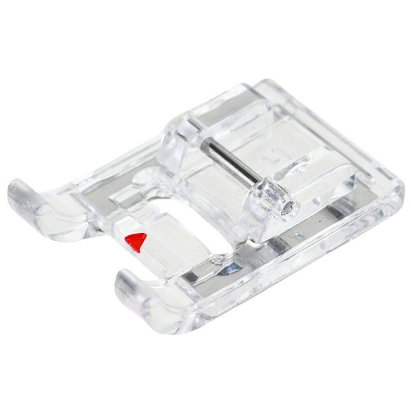 The Janome Satin Stitch Foot is used sewing dense zigzag stitching. The bottom of the foot is beveled for smooth delivery of thread when sewing decorative or satin stitches. Foot is made of clear plastic making it easier to view stitching.