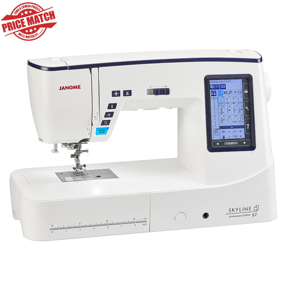 Get the full run-down on the Janome Skyline S7 AE Quilting and Sewing Machine, download a brochure, and watch instructional videos at Janome Australia (opens in new window/tab).